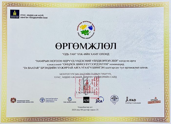 " Юргана Индастри ХХК " Urgana brand 2022 оны Экологийн цэвэр бүтээгдэхүүн үйлдвэрлэгч Entrepreneur боллоо.